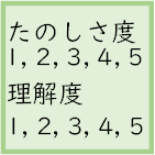 ひとつの「実験授業」が終わると,生徒の皆さんに,その授業の「理解度」と「たのしさ度」を評価してもらいます。 両方とも5段階で評価してもらいますが,この評価が科学の授業では決定的に重要だと考えています。 そこで,生徒の皆さんが「楽しい」「役立ちそうだ」と言ってくれるような教材や実験を集めて「たのしい授業」をやり続けたいと思っています。